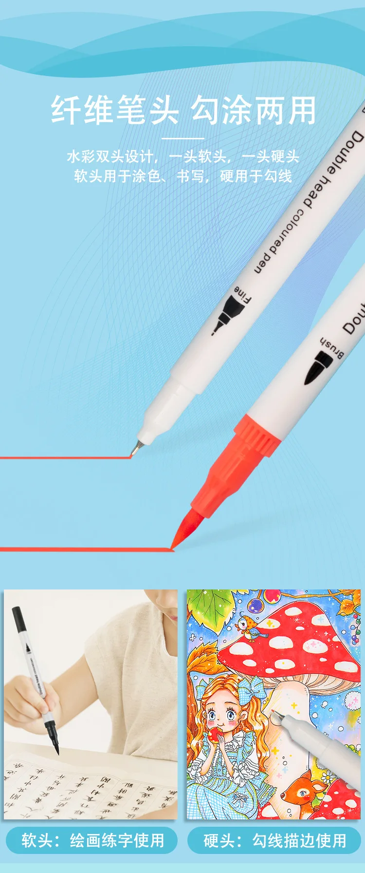 Apresentando um design frente e verso, esses marcadores permitem uma aplicação de duas cores, aumentando a versatilidade do seu kit de ferramentas artístico.