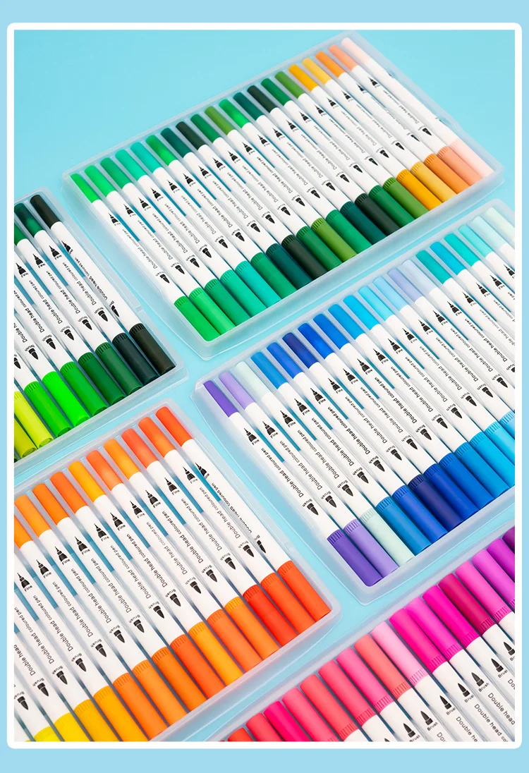 Conjunto de Canetas Marcadoras Dupla Face – 12 a 120 Cores, à Base de Água
